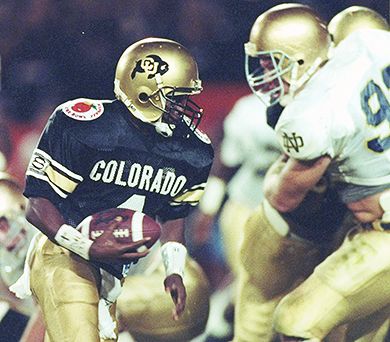 No. 1 Colorado, leading No. 5 Notre Dame 10-9, in the 1991 Orange Bowl, had to punt from its 47 with 1:05 to play. Uh-oh: Heisman runner-up Rocket Ismail caught the ball at the Irish 9. He shook off two tackles and there went the Buffs' national title -- that is, until the Irish's Greg Davis got flagged for clipping the Buffs' Tim James. Irish fans argue it still.