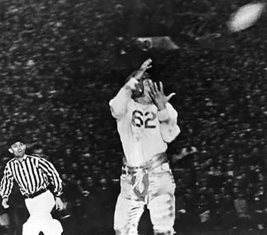 USC fourth-string quarterback Doyle Nave, who had played 28 minutes all season, came off the bench in the last two minutes and completed four passes to Al Krueger, the last a 19-yard touchdown pass, as the Trojans stunned Duke, 7-3, in the 1939 Rose Bowl. Why "stunned"? Those were the only points the Blue Devils allowed all season.