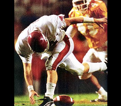 Tennessee's reign at No. 1 looked as if it wouldn't last one game. No. 10, unbeaten Arkansas led, 24-22, and had the ball with less than 2:00 to go. But then guard Brandon Burlsworth stepped on quarterback Clint Stoerner's foot, causing Stoerner to stumble and -- ouch -- fumble. The Volunteers recovered at the Arkansas 43, and Tennessee scored the winning touchdown with :28 left. After that, how could Tennessee not finish No. 1?