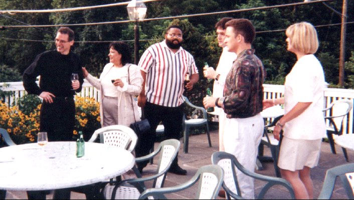 | (clockwise from the red shirt) Chris Smith, Bernard Ferret, Gene Crawford, Joan Walsh, Julie Lancaster, Bob Morrow, Angelo Severino, Grady Ogburn |